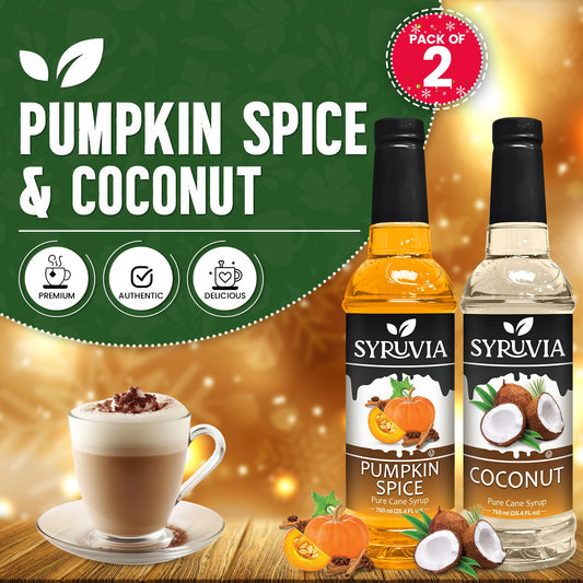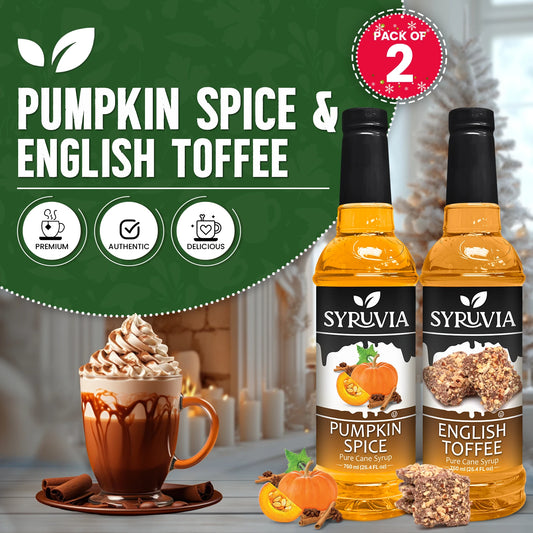 Syruvia Variety Pack - Pumpkin Spice & English toffee Syrup 25.4 Fl oz (2-Pack)$21.99 USD