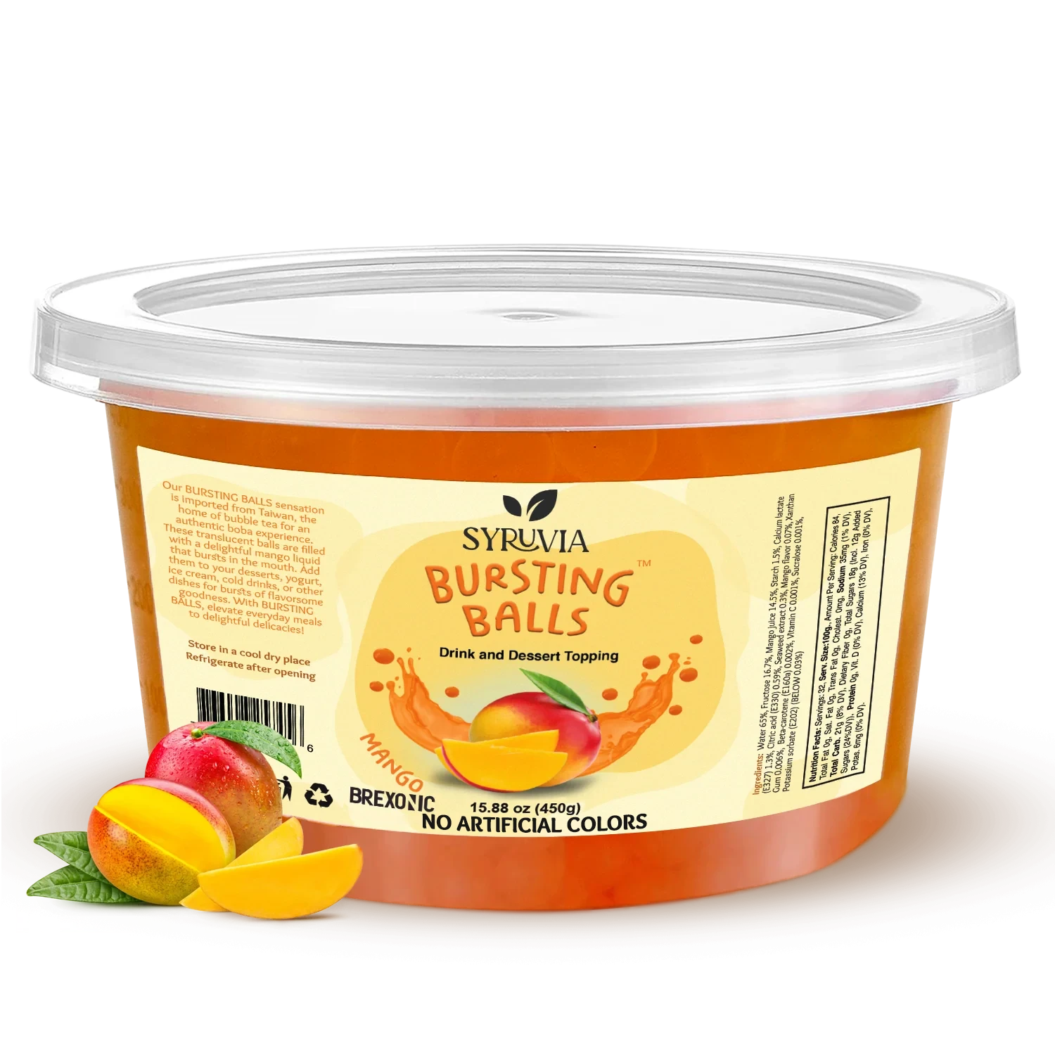 - THE EXPERIENCE - From its authentic Taiwan origin, our Mango flavored Bursting Balls will bring to you the ultimate Boba popping experience! The translucent popping Boba pearls are filled with a delightful fruity liquid that bursts wonderfully in the mouth and will transform your snacking to a new level of pure goodness.