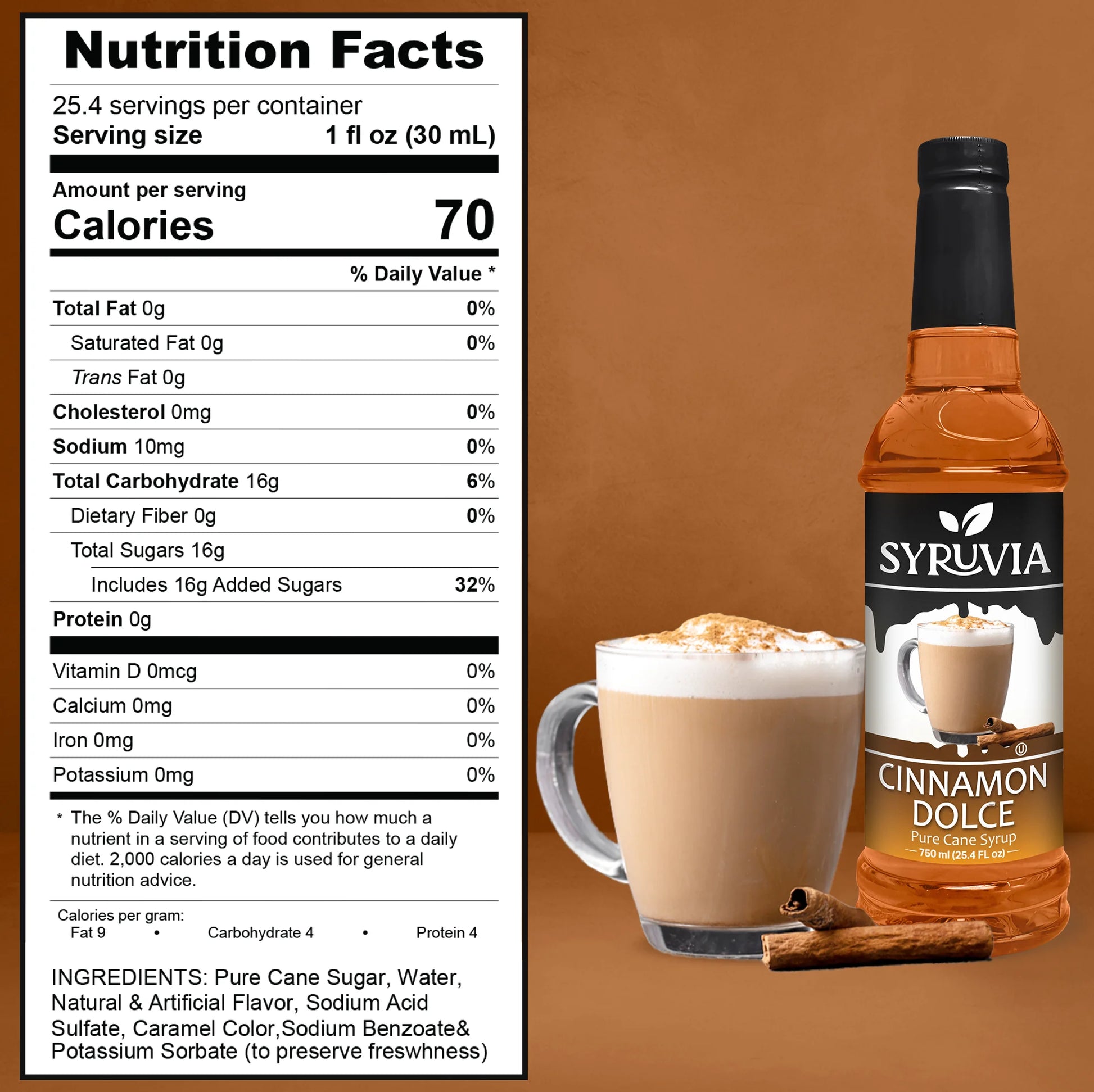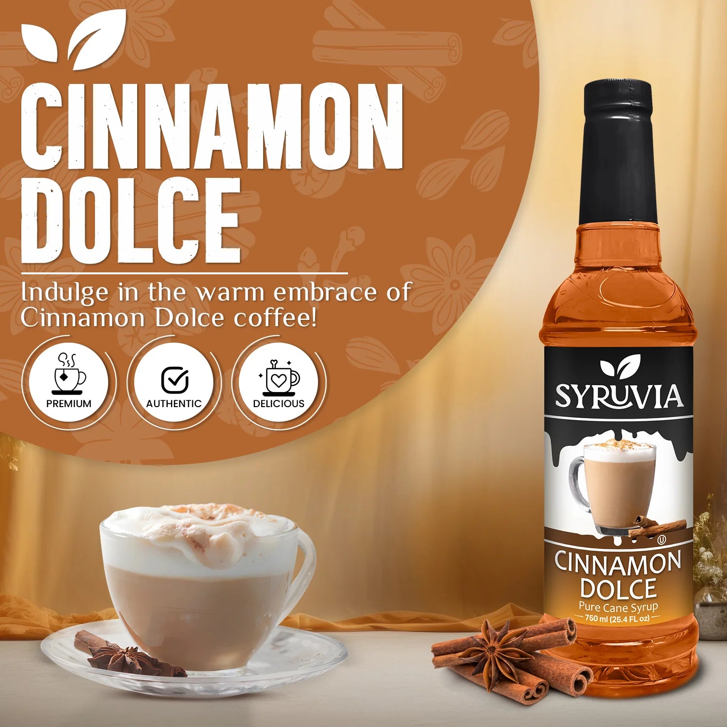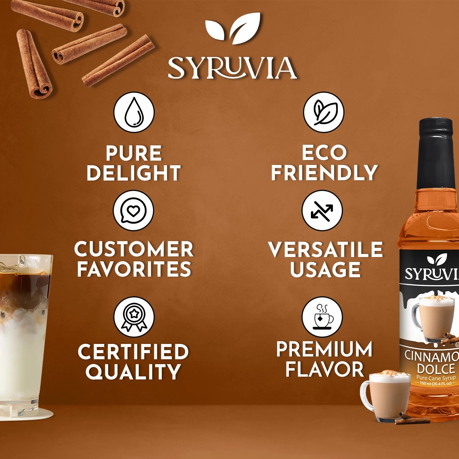 - Sweetened with Pure Cane Sugar: Syruvia Cinnamon Dolce Syrup is crafted with pure cane sugar, offering a smooth, natural sweetness that enhances the warm Cinnamon flavor.