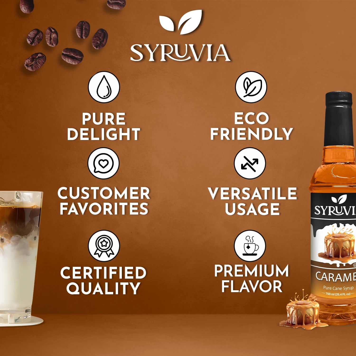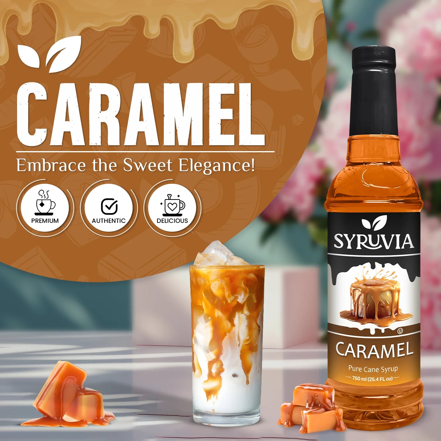 Caramel Syrup: Imagine the heartwarming aroma of caramel wafting from your cup. Syruvia's Caramel Syrup introduces a ribbon of smooth, candy-like sweetness to your beverages and desserts.