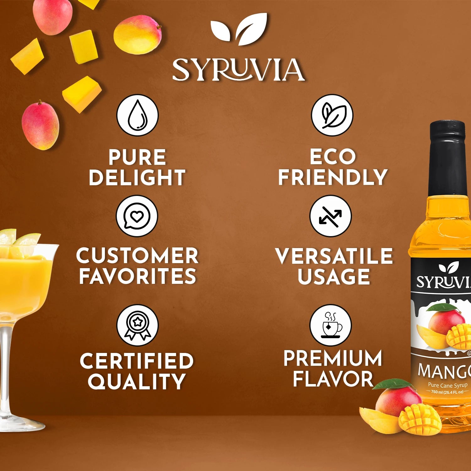- Pure Cane Sugar Sweetness: Syruvia Mango Syrup is sweetened with pure cane sugar, offering a natural, smooth sweetness that enhances the authentic mango flavor.