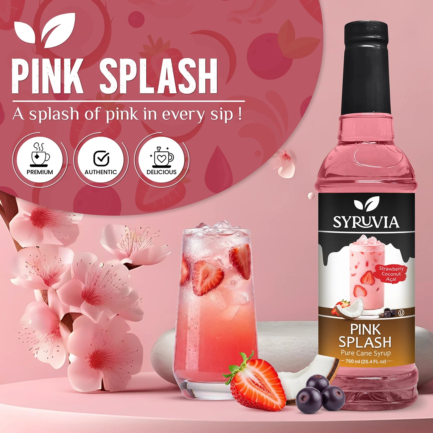 Loved for its bold color and refreshing fruity taste, Syruvia’s Pink Splash Syrup brings a fun, vibrant twist to every sip.