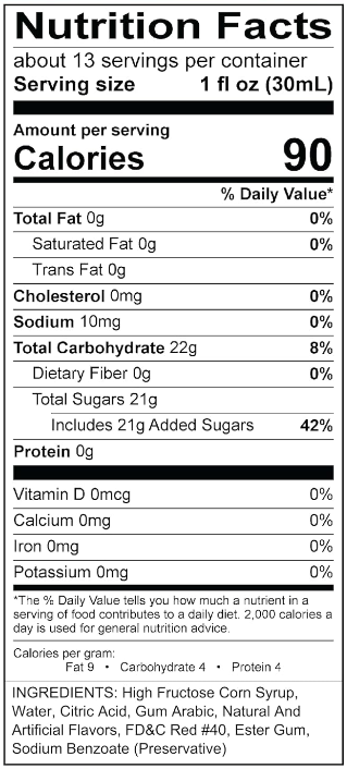 - Fruit Punch: Pampering your taste buds with a unique, refreshing taste is now easier than ever with the fruit punch flavoring syrup, perfect for adding a sweet touch to those hot summer days!