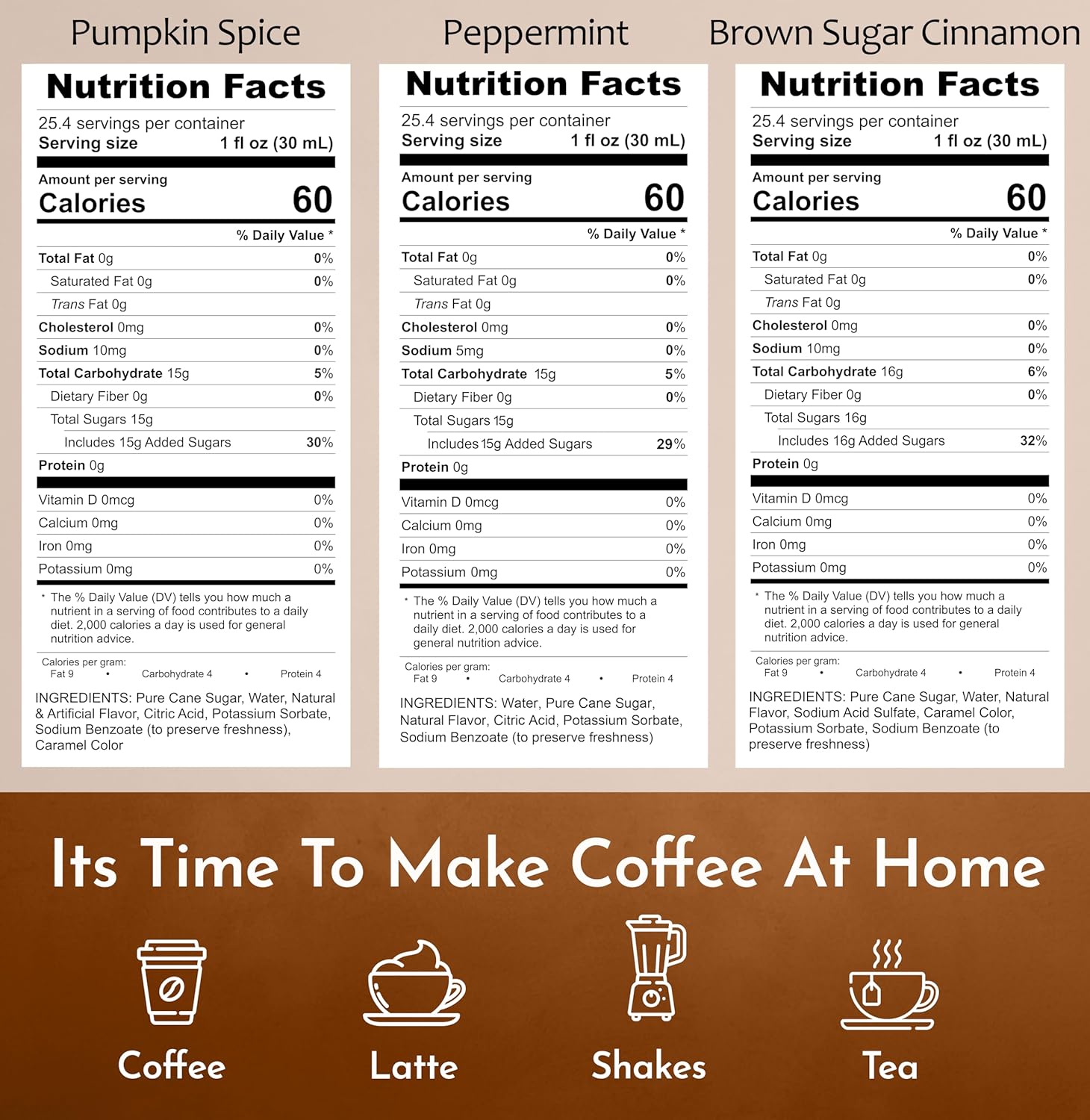 - A Holiday Must-Have: This amazing pack features delightful syrups perfect for getting into the festive spirit. Enjoy rich, warm flavors in your favorite holiday drinks and treats