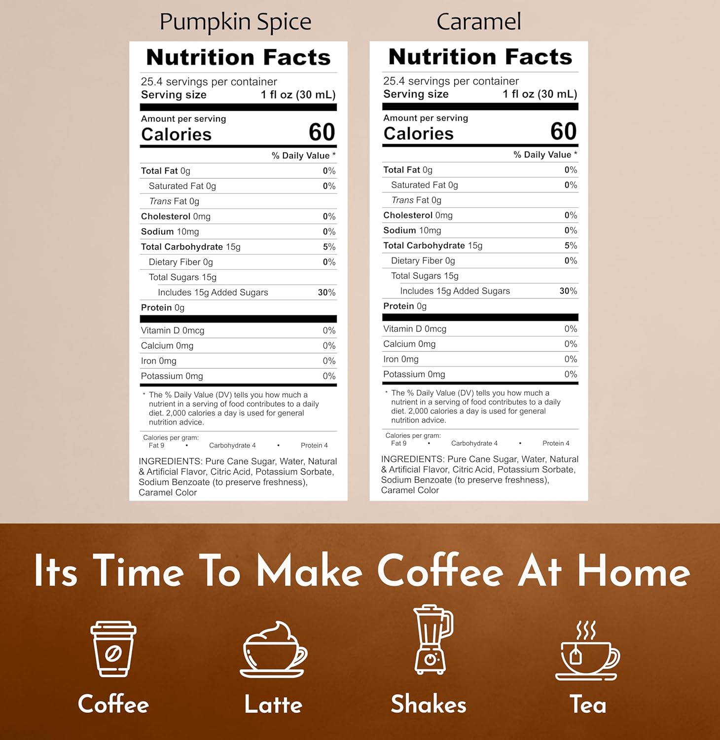 Syruvia Variety Pack - Pumpkin Spice & Caramel Syrup 25.4 Fl oz (2-Pack)