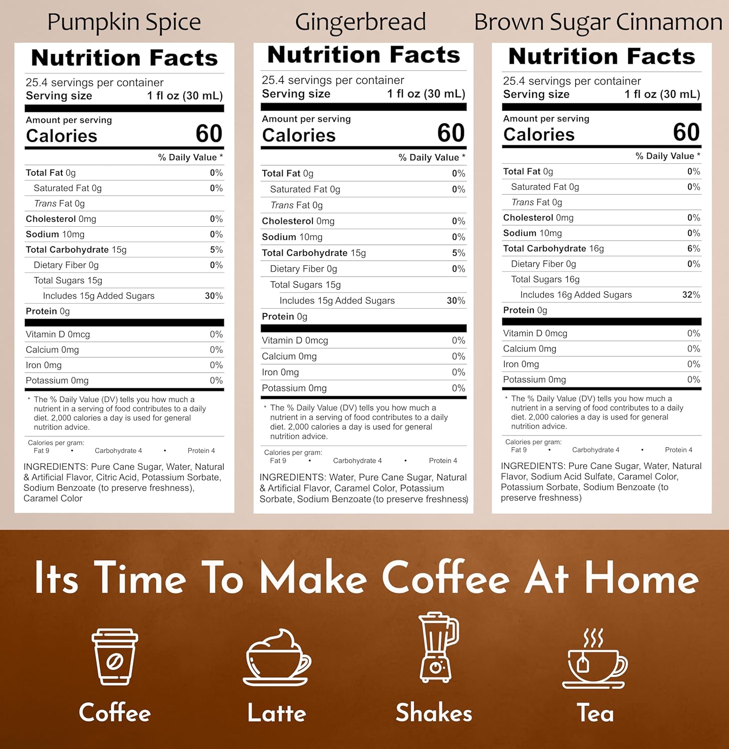 Syruvia Variety Pack - Pumpkin Spice, Gingerbread & Brown Sugar Cinnamon Syrup 25.4 Fl oz (3-Pack)