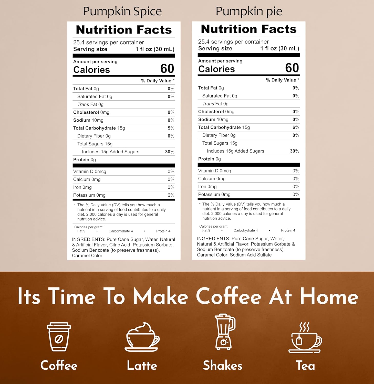 Syruvia Variety Pack - Pumpkin Spice & Pumpkin Pie Syrup 25.4 Fl oz (2-Pack)
