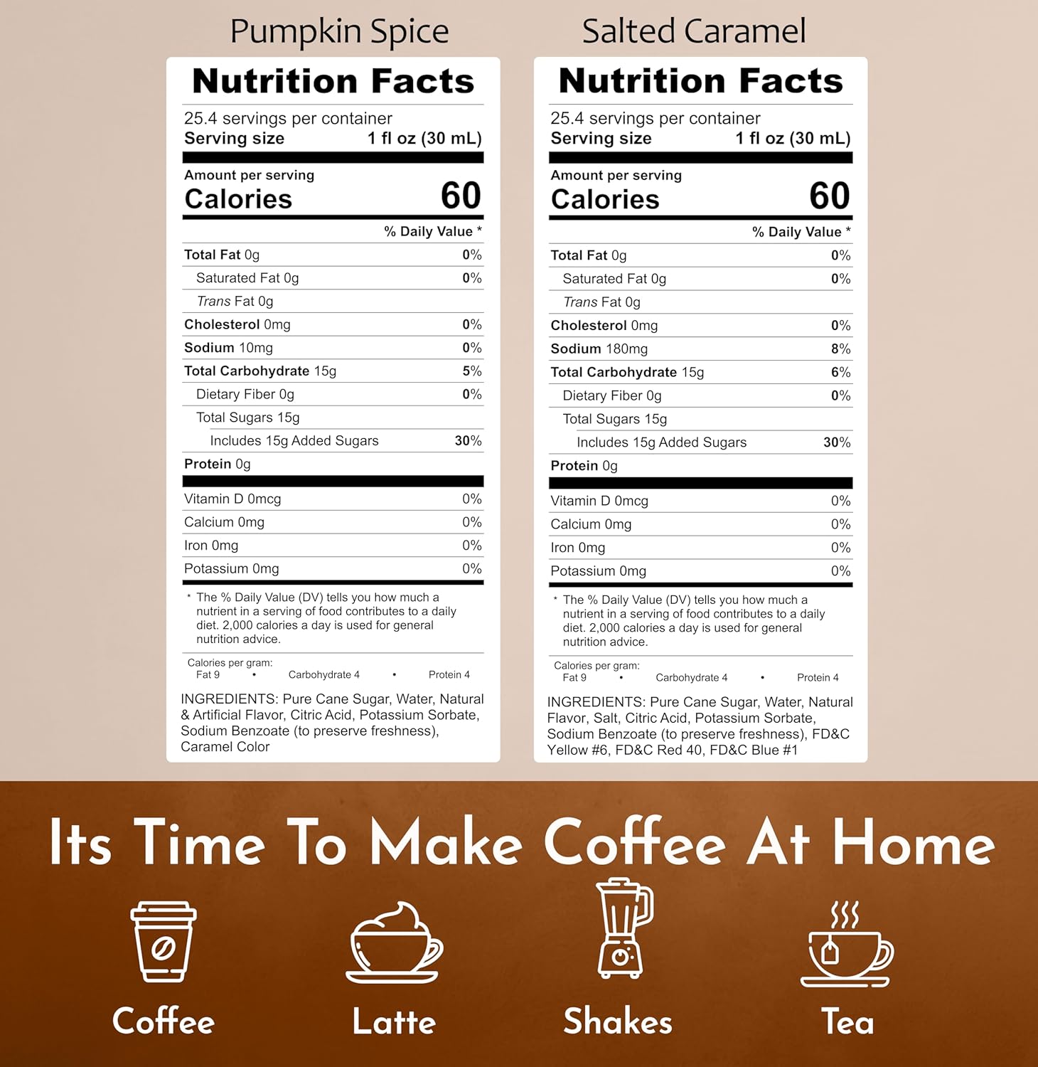 - A Must-Have Holiday Combo: Savor the sweet and salty perfection of Salted Caramel mixed with the warm, spicy notes of Pumpkin Spice – a rich and luxurious holiday pairing for drinks and desserts.