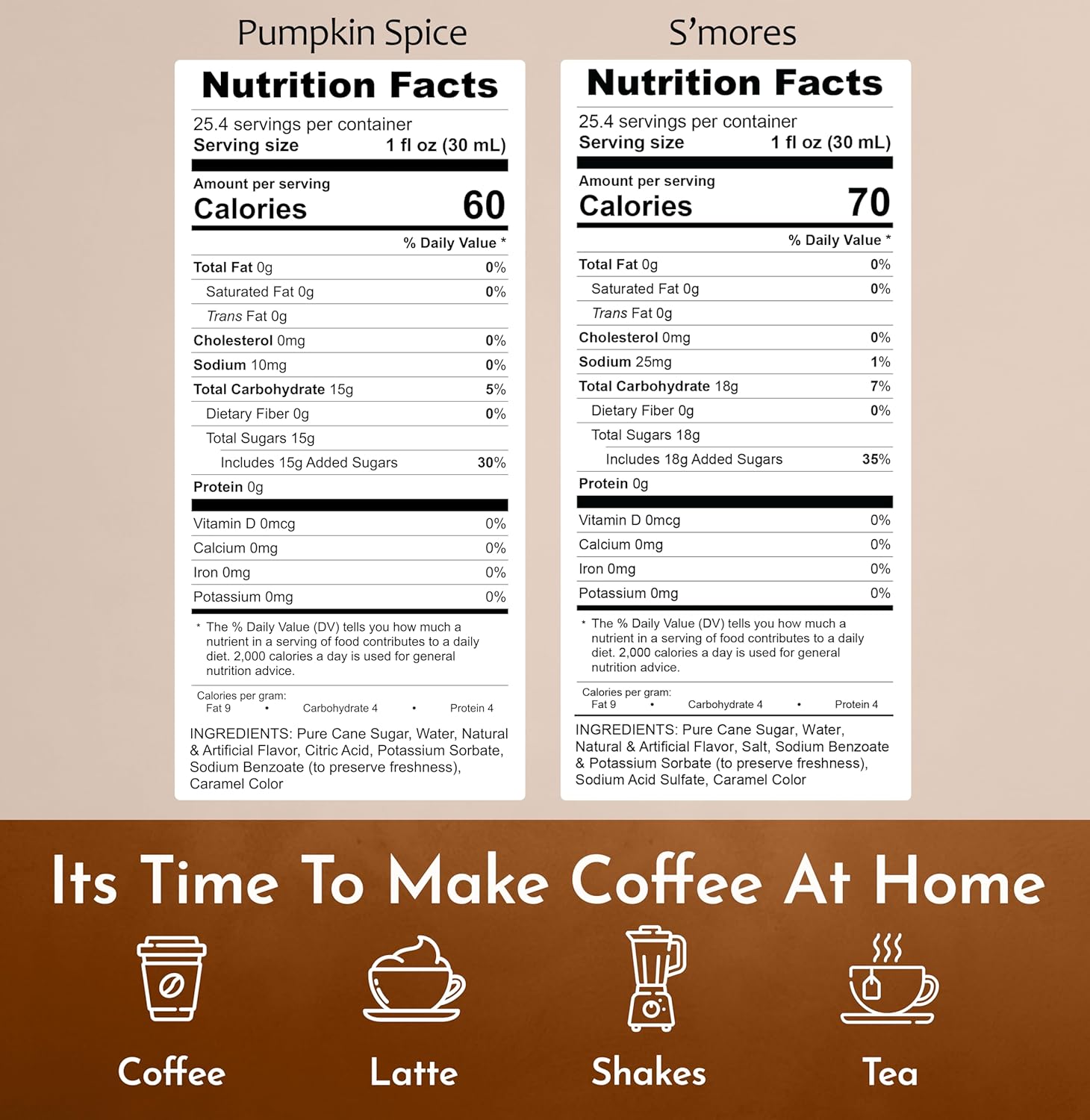 Syruvia Variety Pack - Pumpkin Spice & S'mores Syrup 25.4 Fl oz (2-Pack)