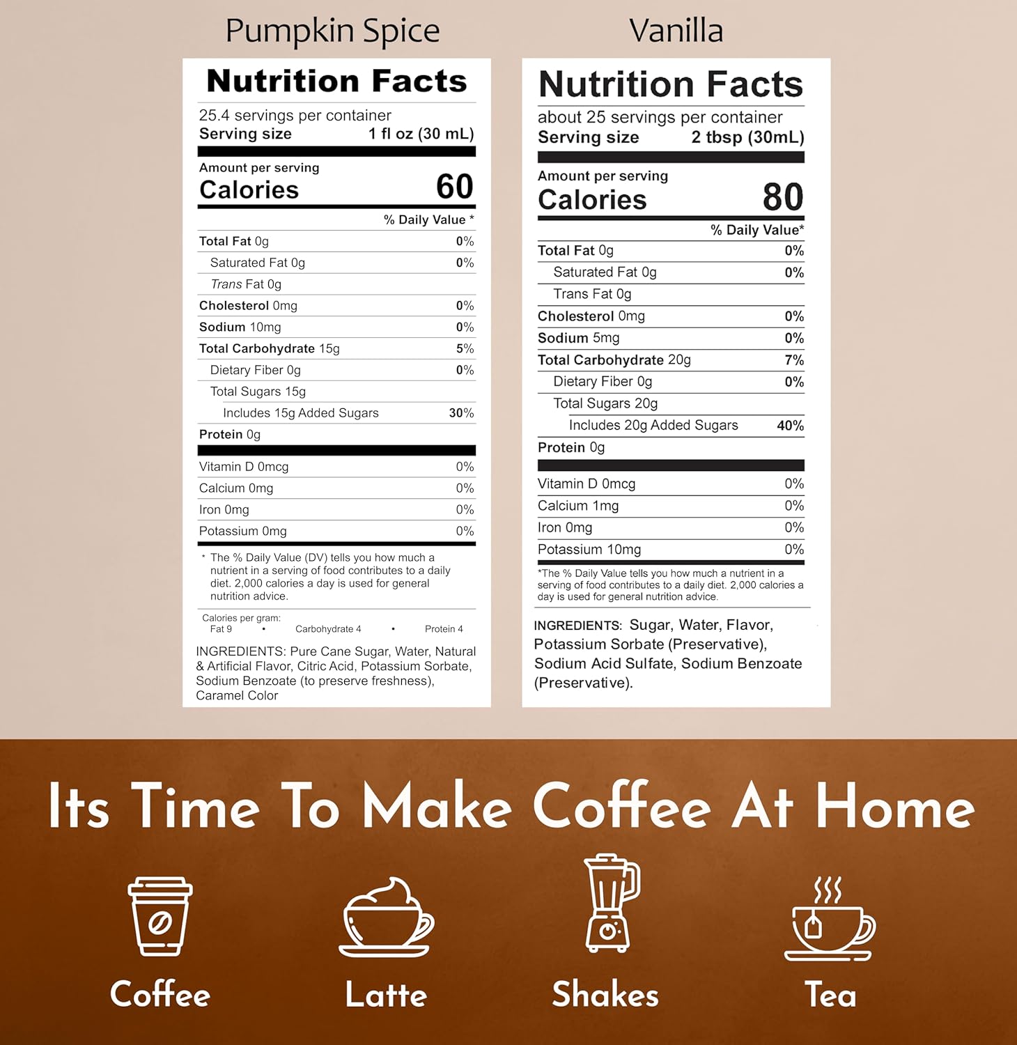 Syruvia Variety Pack - Pumpkin Spice & Vanilla Syrup 25.4 Fl oz (2-Pack)
