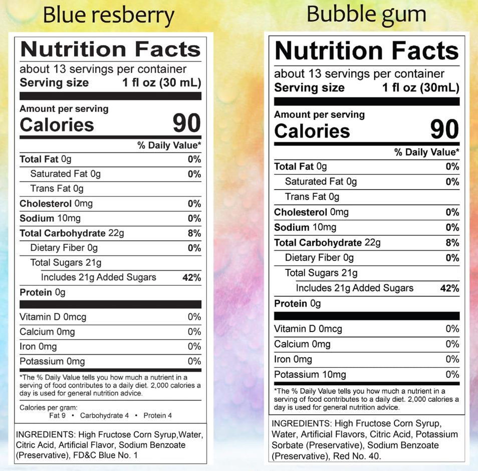 Variety Pack Blue Raspberry, Bubble Gum Shaved Ice Syrup