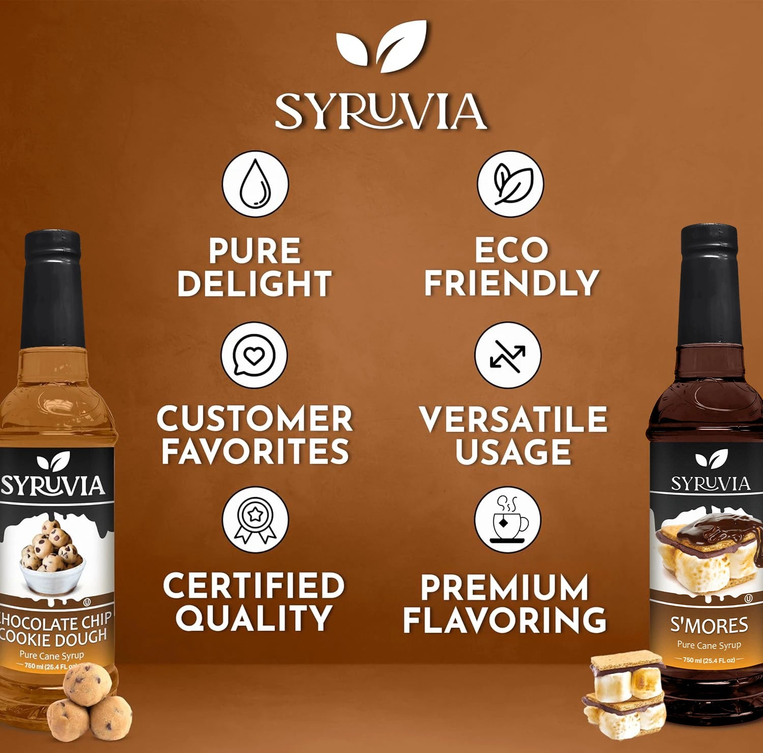 - Elevate your taste experience with the vibrant flavor of Syruvia S'mores Syrup, a kosher and gluten-free option that adds goodness to your favorite beverages, desserts, and culinary creations