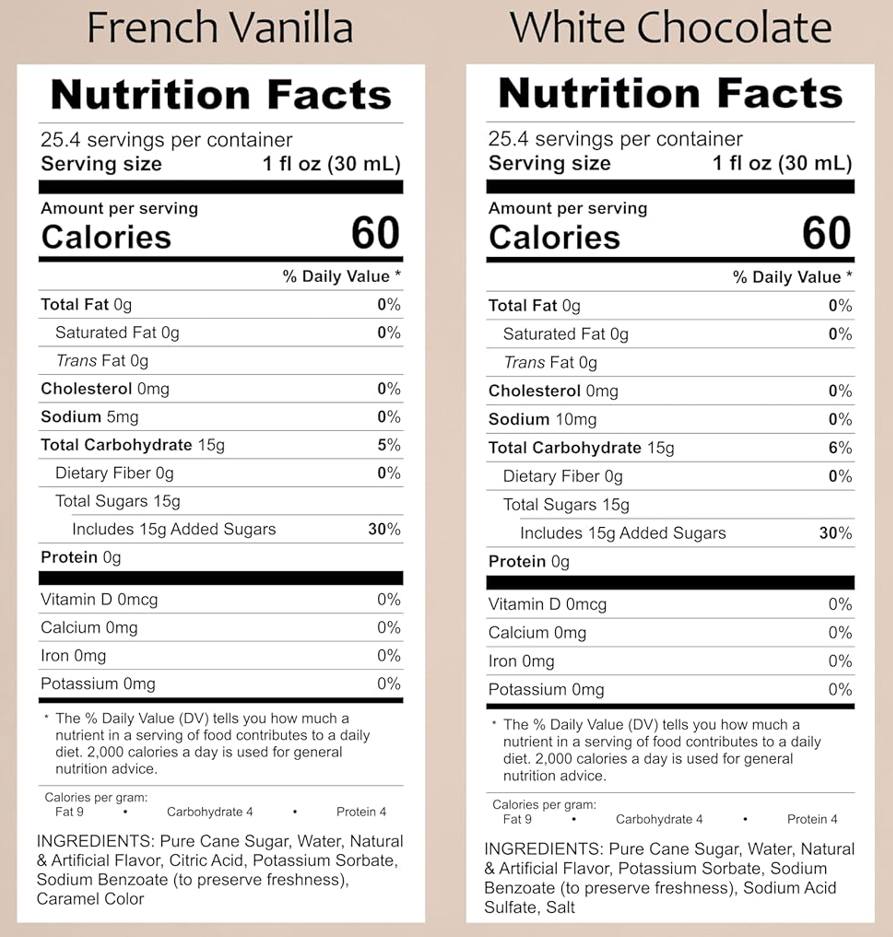 Variety Pack, French Vanilla, and White Chocolate Syrup