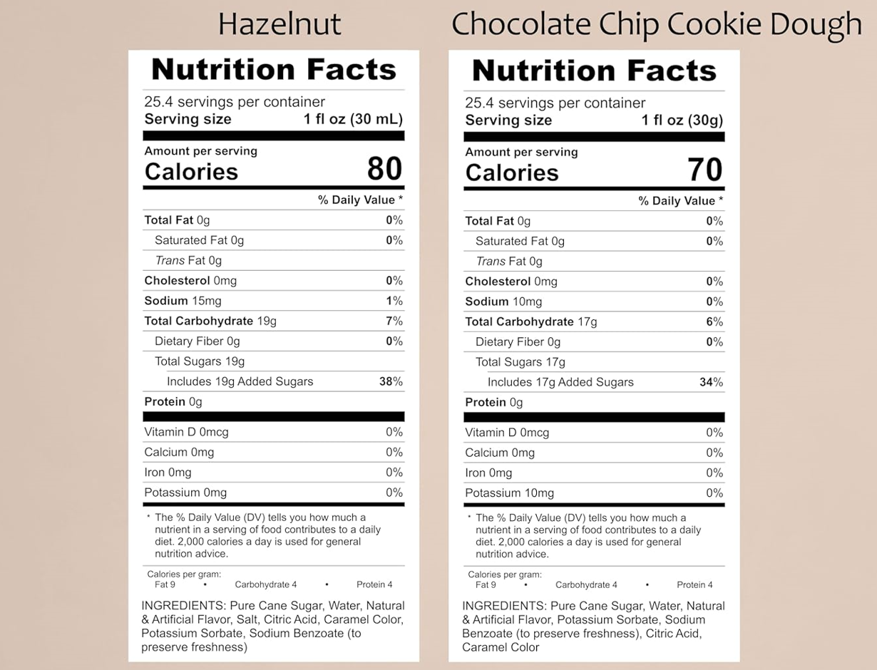 Variety Pack, Hazelnut, and Chocolate Chip Cookie Dough Syrup