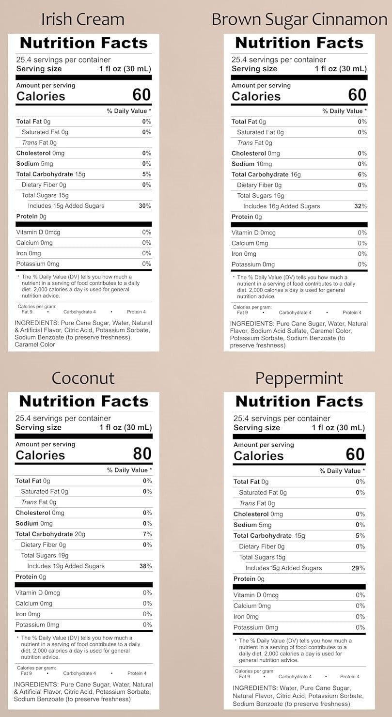 Variety Pack, Irish Cream, Brown Sugar Cinnamon, Coconut, and Peppermint Syrup