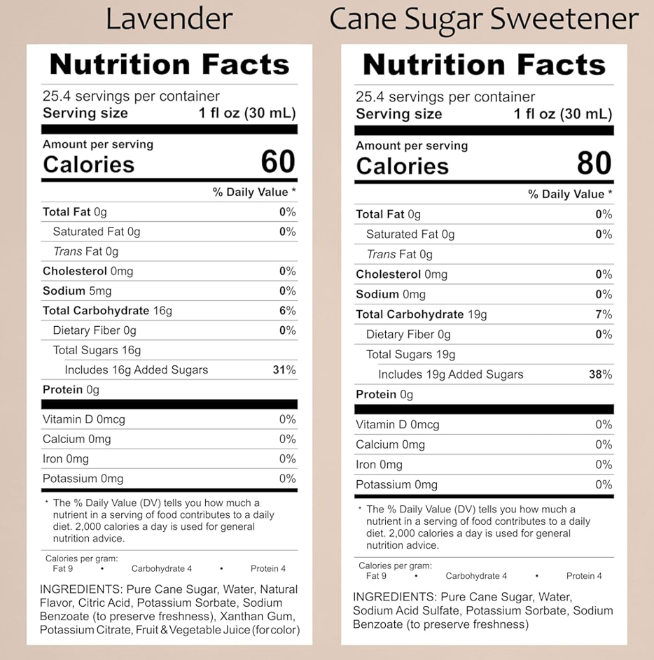 Variety Pack, Lavender, and Cane Sugar Sweetener Syrup