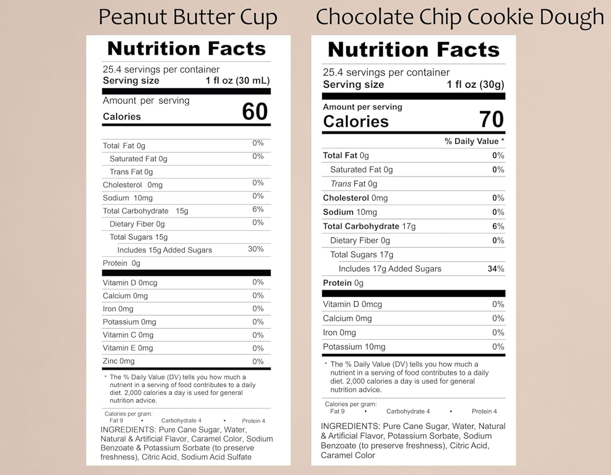 Variety Pack, Peanut Butter Cup, and Chocolate Chip Cookie Dough Syrup