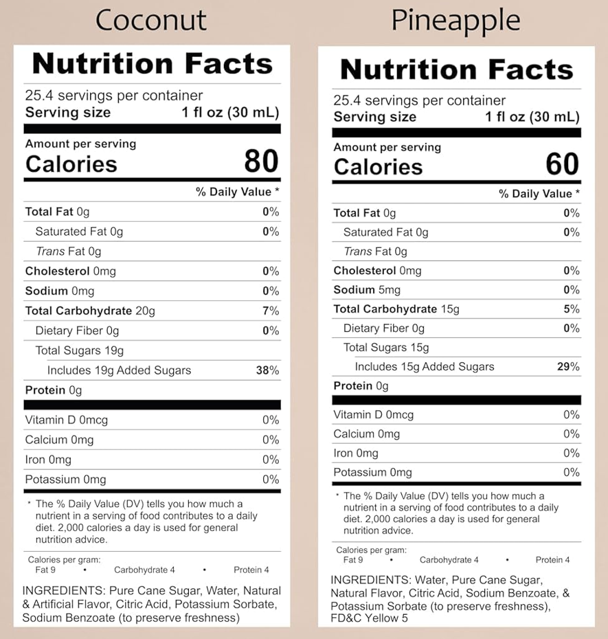 - Indulge in the perfect tropical flavor duo with our set of 2 exquisite syrups – one bursting with the sun-kissed sweetness of pineapple and the other delivering the rich, creamy essence of coconut.