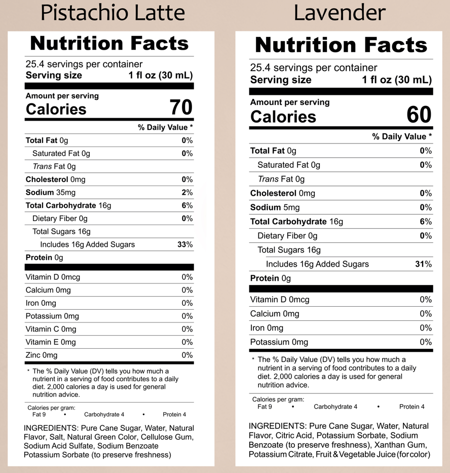 - Elevate your latte experience with the rich and nutty flavor of Syruvia Pistachio Latte Syrup. Kosher and gluten-free, it's the perfect addition to transform your favorite beverages into pistachio-infused delights