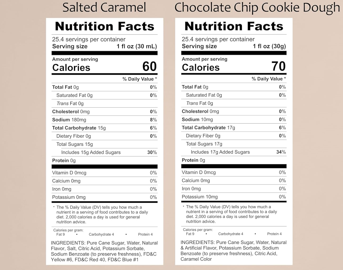 Variety Pack, Salted Caramel, and Chocolate Chip Cookie Dough Syrup