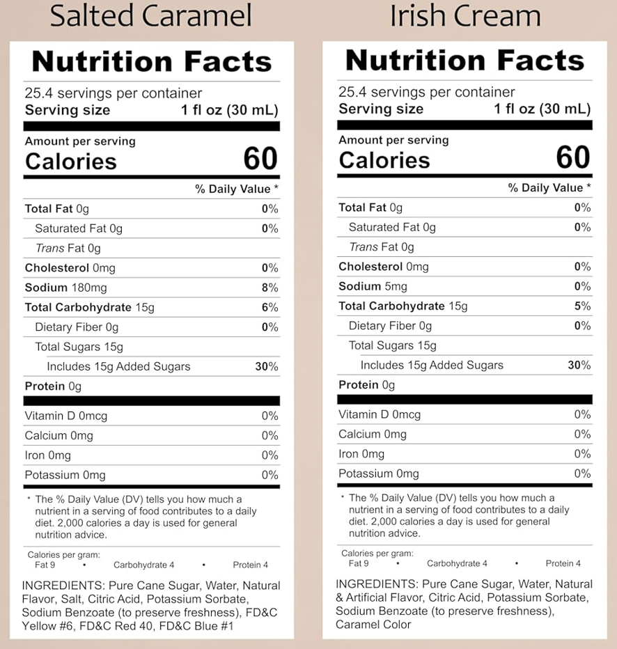 Variety Pack, Salted Caramel, and Irish Cream Syrup