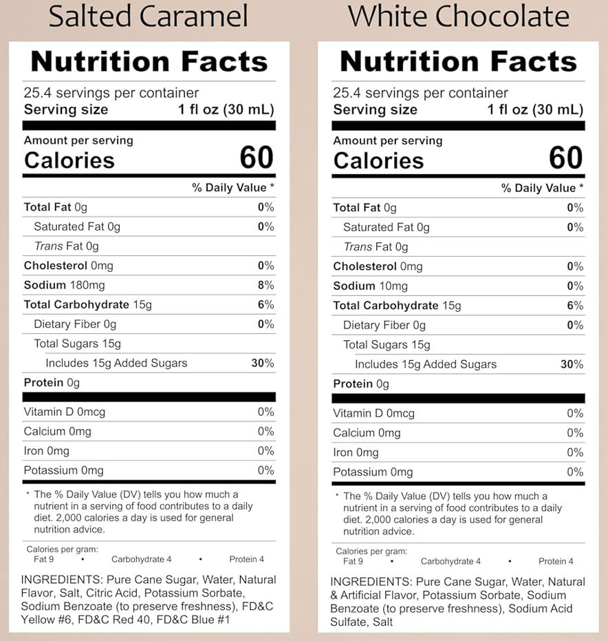 Variety Pack, Salted Caramel, and White Chocolate Syrup