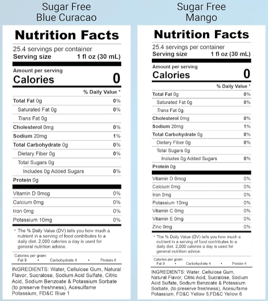 Variety Pack, Sugar-Free Blue Curacao, and Mango Syrup