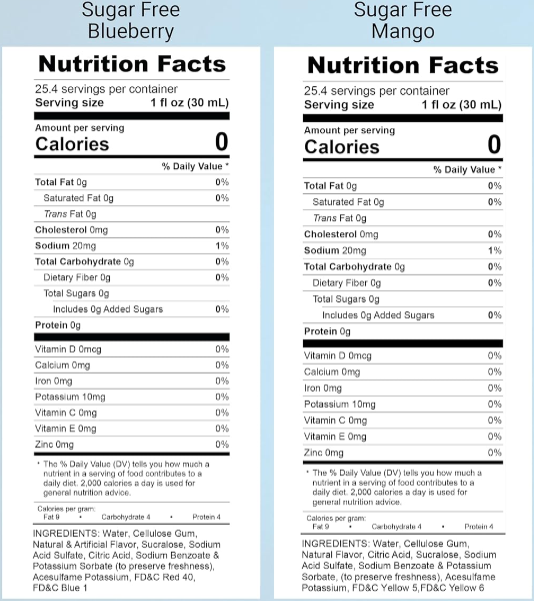 Variety Pack, Sugar-Free Blueberry, and Mango Syrup