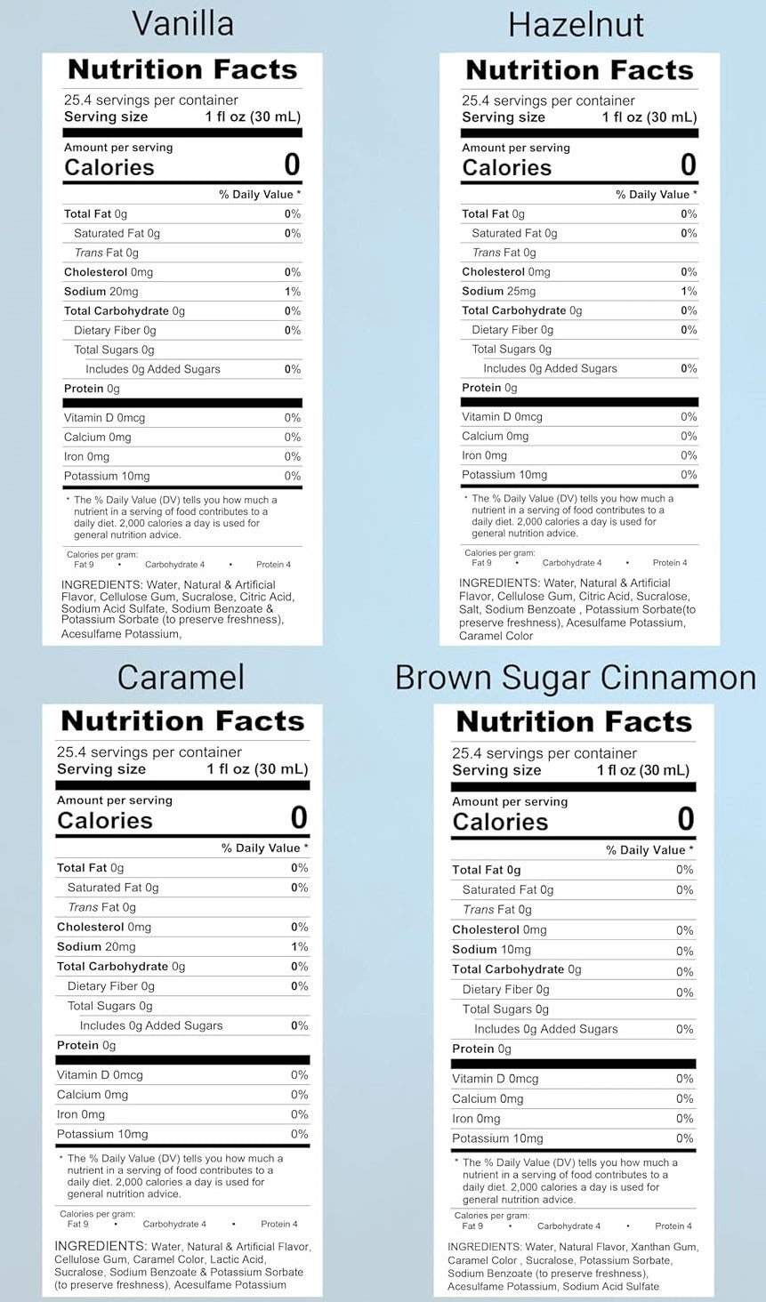 Variety Pack, Sugar-Free Vanilla, Caramel, Hazelnut, and Brown Sugar Cinnamon Syrup