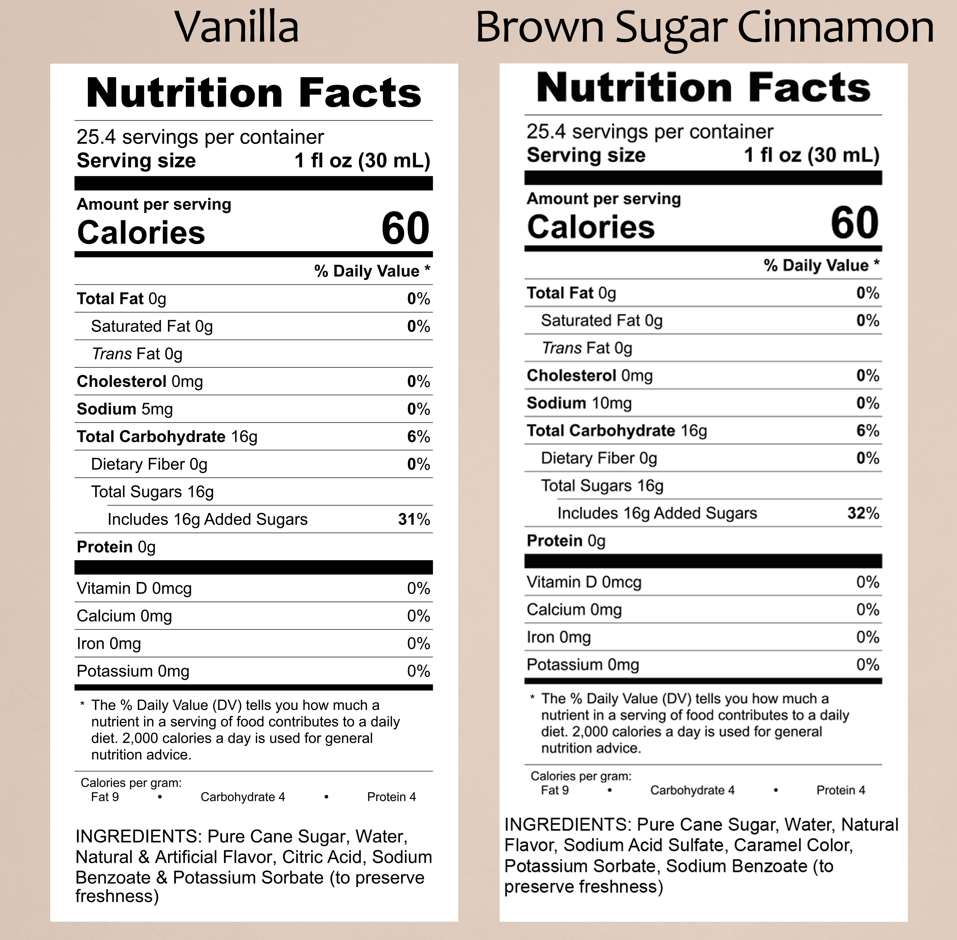 - Savor the homestyle flavors of brown sugar and cinnamon in a convenient syrup form. Expertly crafted with high-quality ingredients, this syrup elevates your coffee, lattes, or baked goods, turning each sip or bite into a moment of comfort.