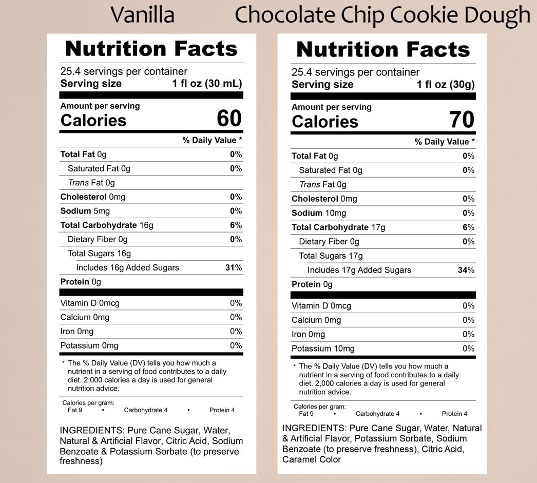 Variety Pack, Vanilla, and Chocolate Chip Cookie Dough Syrup