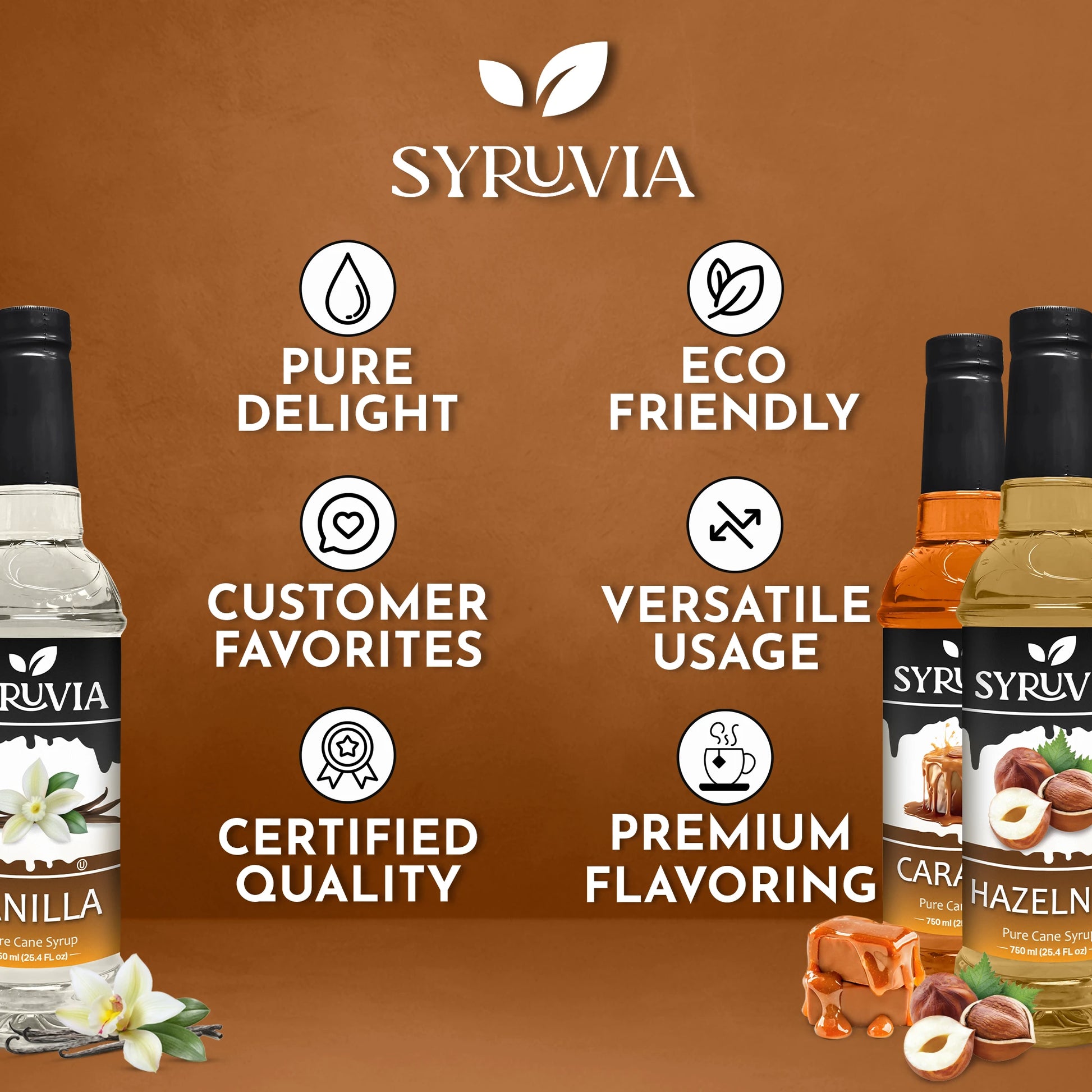 - Quality You Can Trust: The Syruvia syrups for coffee drinks and cocktail mixes are made in the USA with the highest quality, most refined ingredients to ensure excellent freshness and the richest taste! The coffee syrups are Kosher-certified, free of any unnecessary fillers, and contain no added coloring, providing you with a pure and natural coffee experience.