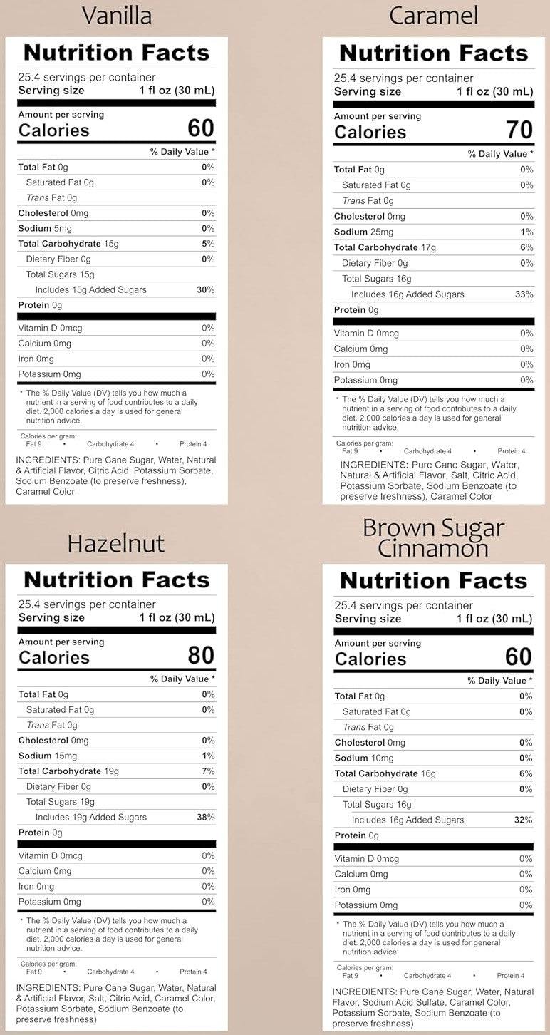 Variety Pack, Vanilla, Caramel, Hazelnut, and Brown Sugar Cinnamon Syrup
